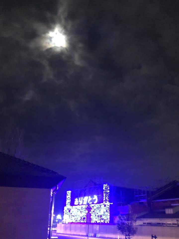 そのレンガの壁に「ありがとう」の文字が照らし出されています。