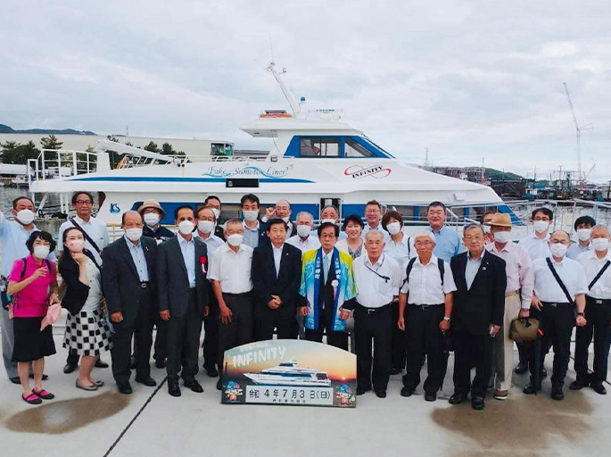 洲本から出港のインフィニティには、市長・役職者始め議会のメンバー合わせて30名ほどが乗りこみました。