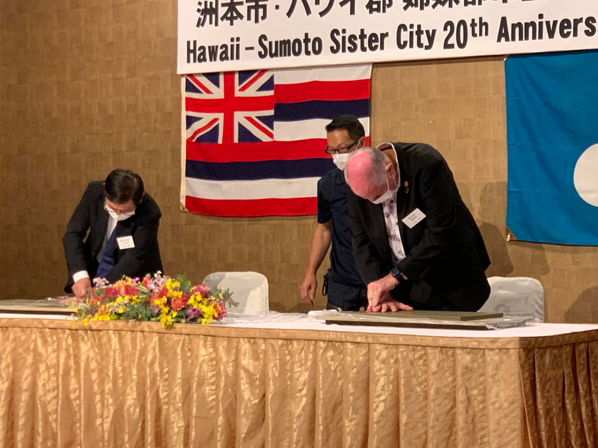 これからも親交を深めていこうという書類には、議会の皆様全員のサインが入り、特別デザインのハワイの模様が織り込まれた記念のタペストリーをハワイからお持ちくださいました✨✨